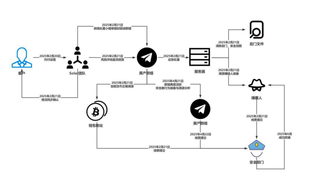 2025年2月21日,思而听情报监控团队在Telegram黑产群组中监测到某客户的敏感数据正在被公开售卖。随后思而听启动应急响应,当天完成舆情处置与病毒溯源,清除黑客留下的后门,并将相关嫌疑人线索提交给监管部门。3个月后,涉案嫌疑人被警方抓捕。