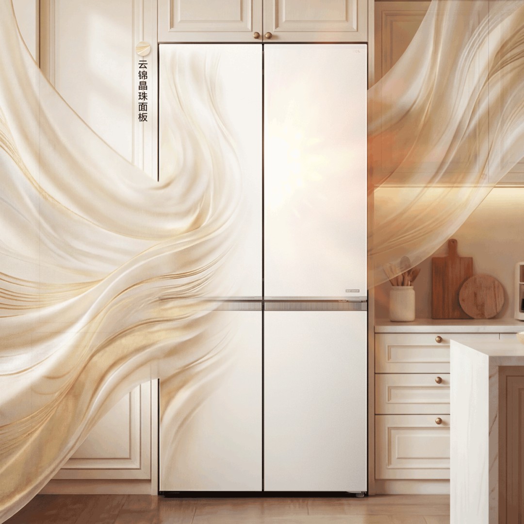 凑近了才看出来,门板不是普通的那种,用的是锦缎晶珠面板,上面有细细的纹理,灯光底下会泛出柔和的光泽,像织物的质感。这是从传承1600年的宫廷云锦得来的灵感,一寸锦一寸金。现在这手艺落到冰箱上了,倒也不张扬,就是在那儿安安静静地待着,但你看久了会觉得,这厨房是有审美的。