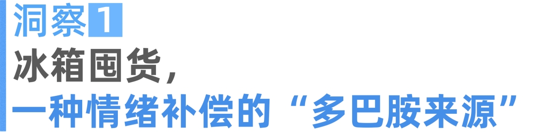 对很多人而言,冰箱囤货已经成为一种情绪调节活动。在深夜emo时刻,在周末无所事事的午后,谁能忍得住不下一个大单,纯以悦己为目的,把冰箱塞满自己最爱吃的美食?老自一个,老己一个,吾一个,我一个,本人一个......调查显示,近半数人在压力过载的时候,都会默默为冰箱补货。