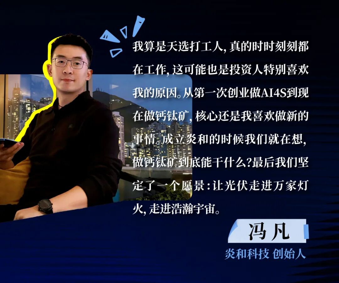 冯凡:成立炎和的时候我们就在想,做钙钛矿到底能干什么?最后我们坚定了一个愿景:让光伏走进万家灯火,走进浩瀚宇宙。